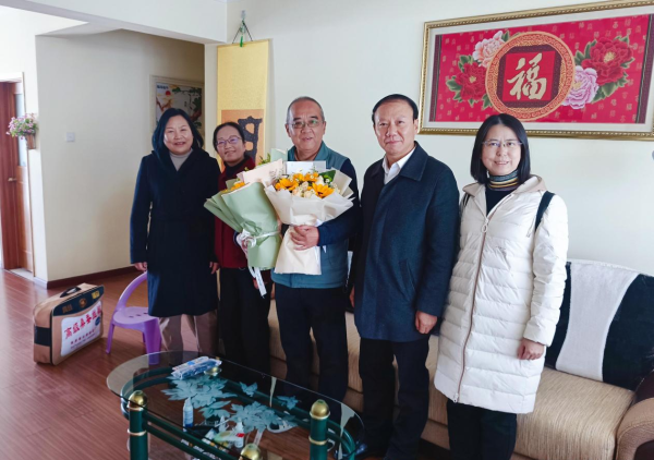 云中讯(校工会)12月25日下午,校党委副书记郭平率领人事处、工会、第一临床医学院有关同志看望慰问我校12月退休的俞桦老师,感谢他多年来坚守教学第一线,为学校改革发展和人才培养付出的辛勤努力和持续贡献,向他送上校党委、行政的关心和祝福。
