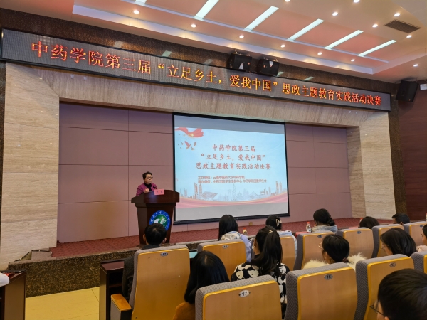 云中讯(通讯员 崔彩云) 2021年12月23日,中药学院第三届“立足乡土,爱我中国”思政主题教育实践活动决赛在翰墨楼一楼报告厅举行。校党委副书记、校长熊磊、副校长孟庆红、中药学院党委书记黄鹤、院长俞捷、党委副书记刘仁馨、副院长王文静出席活动,校团委潘思芮老师、马克思主义学院李莎老师、高教中心太星丽和黎邢亚娜老师、中药学院陈迪老师担任评委,中药学院全体辅导员、班主任及各年级学生代表参加现场活动,未到现场学生以班级为单位、采取线上会议形式观看,线上线下共计3000余名师生参与本次活动。