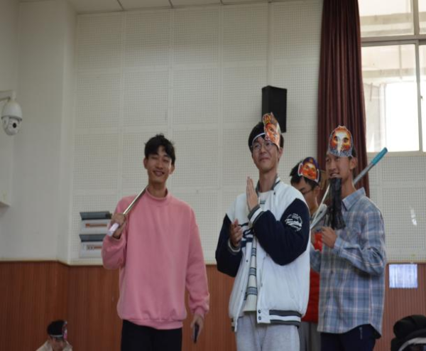 本次活动采取以宿舍为单位组队和随机抽取的方式进行,活动设一、二、三等奖,班主任白璐、导师李莉做了现场指导,6名同学担任活动评委。当天的英语小剧场活动中,共有《西游记之三打白骨精》《高老庄娶亲》《白雪公主与七个小矮人》《内卷传》《大话西游》等6个剧目参演。全英文剧本、丰富的道具和服装、高潮迭起、诙谐睿智的表现形式,赢得掌声阵阵、笑声连连,其他班同学也被吸引到现场观看。