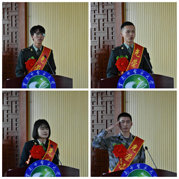 会上,荀传美宣读了《关于表彰2021年大学生征兵工作集体和先进个人的决定》《关于表彰退役返校复学同学的决定》。与会领导为受表彰的3家“先进集体”、8名“先进个人”、63名“服务国防和军队现代化建设先进个人”颁发荣誉证书。王翠岗书记向李春青等6名转业干部颁发了军事理论教育兼职教师《聘书》。4名退役返校复学同学代表发言,分享军旅生活、成长收获,表达对学校和部队的感激之情。