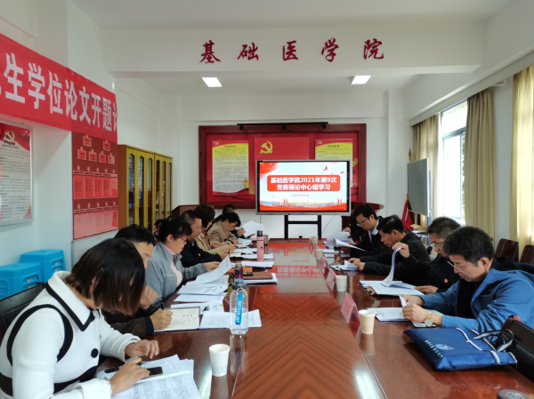 云中讯(基础医学院)2021年10月28日下午,基础医学院党委在精诚楼207会议室举行2021年第9次党委理论中心组学习,校党委副书记荀传美到场巡听旁听,校巡听旁听组成员、校党政办主任黄孝平,中药学院党委书记黄鹤,宣传部副部长侯宾,校党政办张洁参加巡听旁听。基础医学院党委委员、职能科室负责人参加学习,会议由基础医学院党委书记卞瑶主持。