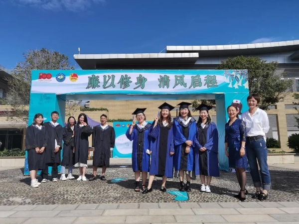 开展“廉以修身,清风启程”清廉文化活动,邀请毕业生代表宣读“清廉从我做起”倡议书,跨越“清正廉洁”拱门,踏上“廉洁人生第一步”地贴,前往“扣好人生第一粒扣子”廉洁签名墙签名、合影。