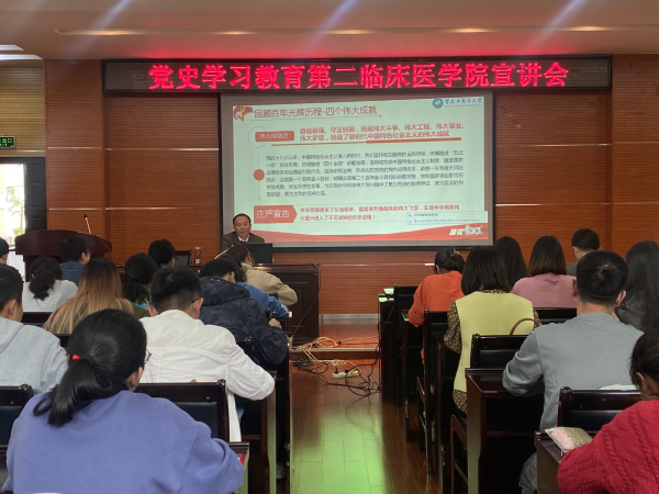 云中讯(通讯员 施英华)2021年10月29日下午,第二临床医学院举办学习贯彻习近平总书记“七一”重要讲话精神宣讲报告会,校党委副书记郭平应邀作专题宣讲报告。报告会由第二临床医学院学生党总支书记王丽娟主持。学院党支部书记、师生党员、发展对象和积极分子共80余人参加报告会。
