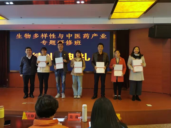 在10月22日举行的结业典礼仪式上,六位学员代表相继上台发言,从生物多样性和中医药产业出发,联系自身工作实际,深入交流研修班期间的学习心得及体会,并领取了结业证书。