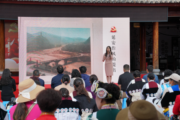 李莎老师的宣讲主题是《接力延安作风 赓续精神血脉》。她以“延安作风打败西安作风”的党史小故事为主线,引出“抓作风必先强党性”。以党史学习教育为主题,论述中国共产党百年的优良作风在“办实事、开新局”中的重要性。以习近平总书记在庆祝中国共产党成立100周年大会的重要讲话为引领,号召广大干部群众接力延安作风牢记初心使命,赓续精神血脉走向伟大复兴。