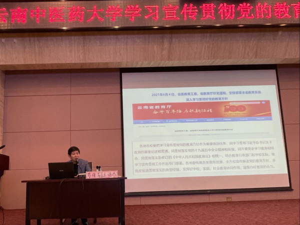 云中讯(通讯员 高洁)为深入贯彻落实中央教育工作领导小组《关于深入学习宣传贯彻党的教育方针的通知》和中共云南省教育工委、云南省教育厅《关于开展党的教育方针贯彻落实专项行动的通知》,教育引导教职医务员工深入学习领会党的教育方针的科学内涵、核心要义和精神实质,不断提高教书育人的能力和水平,2021年10月11日,学校党委副书记荀传美作“学习贯彻党的教育方针 勇担立德树人重任”专题报告。报告会由副校长钱子刚主持。