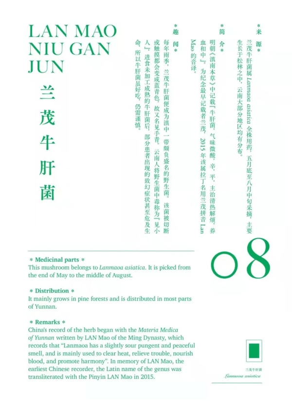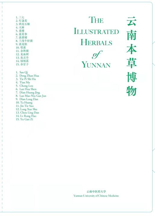 特别值得一提的是,最近CCTV13记者亲临即将开幕的COP15大会展厅,云南省生态环境科学研究院副院长吴学灿向记者介绍了我校的《云南本草博物》图册。该图册由学校组织国内外知名中医药专家、画家和设计师精心制作,是以明代云南医家兰茂攥写的《滇南本草》为蓝本,精选15种云南本草著作中的植物与真菌,数字15与COP15相呼应,其中8幅选自清代吴其浚《植物名实图考》的墨线图,最终形成古今交融、中西合璧的《云南本草博物》图册(The Illustrated Herbals of Yunnan)。图册彩绘精美,设计简约,采用英汉双语,环保纸张和特殊烫印工艺,既是本草博物的知识卡片,又是值得玩味的艺术藏品。