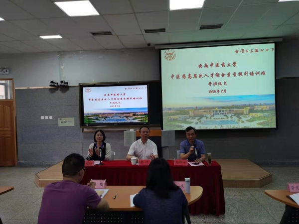 校党委副书记郭平、云南大学副校长杨泽宇出席开班仪式。郭平指出,开展人才培训是发展国家中医药事业的需要、是落实云南省和我校“十四五”人才发展规划的需要,是更好服务云南省生物医药和大健康产业发展的需要,更是推动学校高质量发展的需要。他希望参加培训的同志深刻领会习近平总书记“七一”重要讲话精神,与党史学习教育、师德专项教育结合起来,提高认识,端正态度,严格遵守培训纪律,以问题为导向,做到学习与思考相结合、学习与运用相结合、学习与创新相结合。专业技术人才要思考如何开展自己的研究,使研究与云南三大战略定位、学校高质量发展有机结合;管理人员要思考如何为高层次人才做好服务保障工作,为人才营造一个宽松、良好的环境。