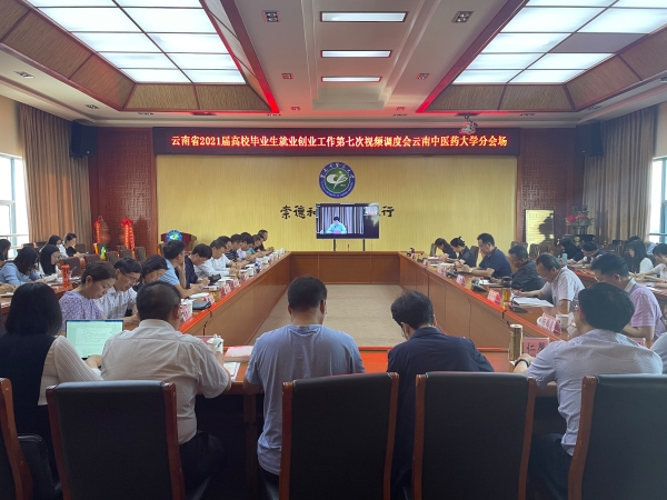 云中讯(记者 陈楠)7月8日,云南省2021届高校毕业生就业创业工作第七次视频调度会在昆明召开,会议学习贯彻落实习近平总书记在庆祝中国共产党成立100周年大会上的重要讲话精神,通报全省就业工作进展情况,针对存在问题对下一步工作重点进行再部署再强调。我校设分会场参加会议,全体校领导,各部门(单位)主要负责人,就业创业指导中心全体人员,毕业班辅导员、班主任参加会议。