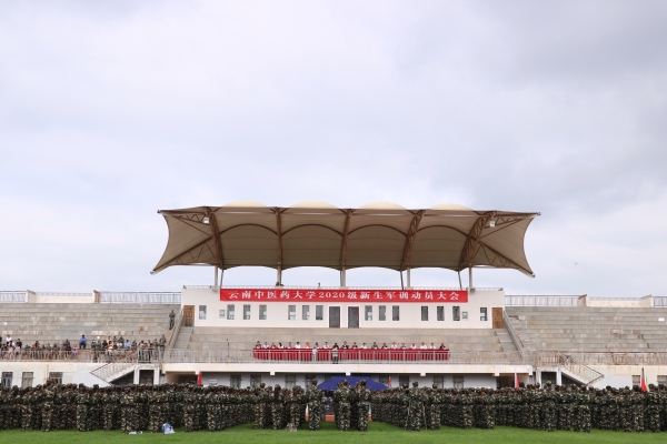 云中讯(记者 陈楠)2021年7月5日上午,我校2020级学生军训动员大会在呈贡校区田径场举行。校党委书记、军训工作领导小组组长王翠岗作军训动员讲话,校党委副书记、军训工作领导小组副组长荀传美主持。全体校领导出席,2020级学生军训工作领导小组全体成员、各学院分管学生工作领导、学工办主任,2020级全体参训学生辅导员、班主任,全体带训教官以及2020级全体参训学生共2400余人参加动员大会。