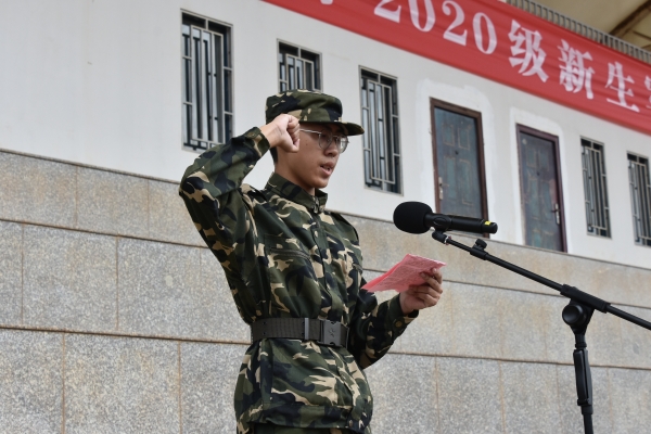 2020级新生代表、第二临床医学院2020级针灸推拿学2班董航发言,代表全体同学表达了积极参加训练、保证完成任务的决心和信心。