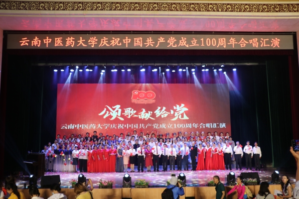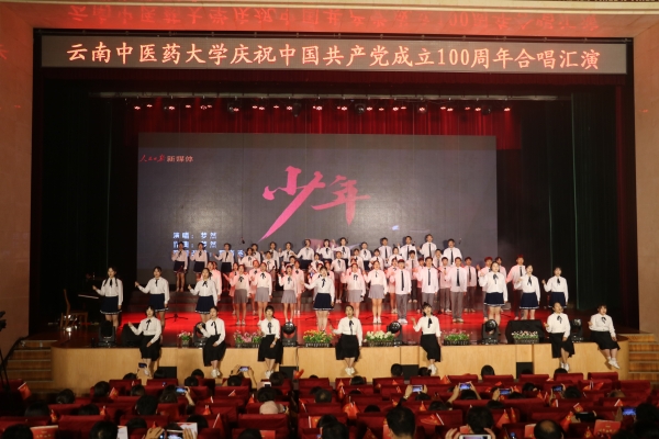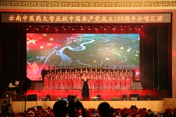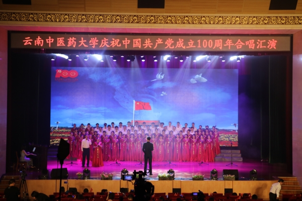 云中讯(通讯员 李建宏)6月29日晚,我校庆祝中国共产党成立100周年合唱汇演晚会在呈贡校区兰茂堂举行,师生们用唱红歌的方式向党的百年华诞献礼。校领导王翠岗、熊磊、荀传美、郭平、孟庆红、祁苑红、钱子刚、陈颖、杨鹤清出席活动。