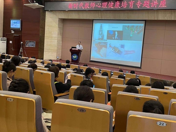 讲座由昆明医科大学第二附属医院主任医师、博士研究生导师、云南省医学领军人才杨建中主任主讲。杨主任分析了教师们在新时代背景下面临的新的挑战和压力,通过引用典型事例指出教师普遍存在的一些问题,深入分析了造成这些问题的原因。讲座互动环节中,杨主任与在座的老师进行了“正念呼吸”训练,通过关注自身的呼吸进行身体的放松,从而达到心灵的放松。杨主任建议教师们坚持健康的生活方式,全面客观地认识自我,接纳自我,提高情绪管理能力,从而发现更好的自己。