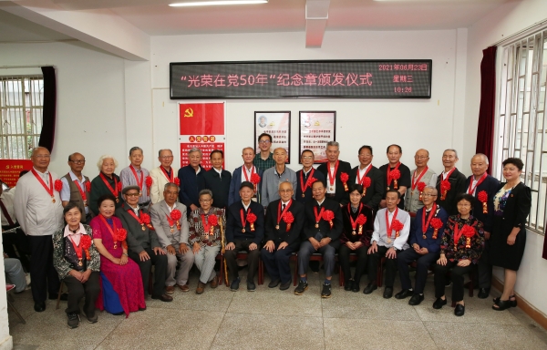 据悉,校本部离退休教职工党员首批获得“光荣在党50年”纪念章的老党员共有56位,56名老党员平均党龄61年,其中党龄最长的达76年。本次颁发仪式和文艺演出是离退休教职工党委开展庆祝建党百年系列活动、推进党史学习教育的重要内容。