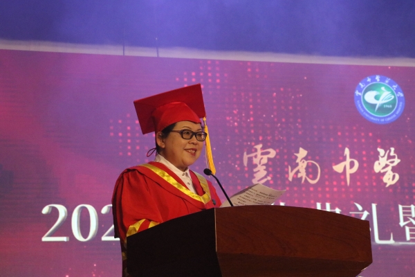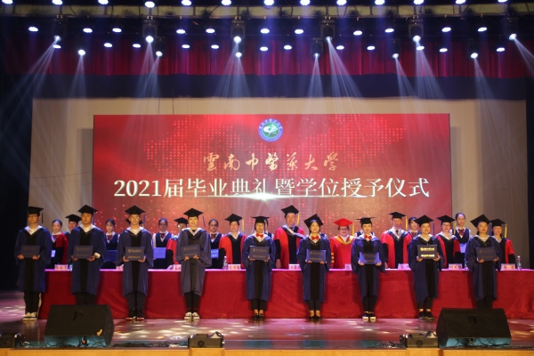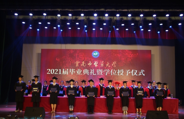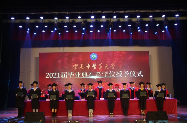 校党委副书记荀传美宣读了《云南中医药大学关于颁发2021届全日制攻读硕士学位研究生毕业证书的决定》。校党委副书记郭平宣读了《云南中医药大学关于2021年上半年授予硕士学位并颁发相应证书的决定》。副校长孟庆红宣读了《关于颁发第一批2021届普通高等教育本科学生毕(结)业证书及换发2020、2019届部分学生毕业证书的决定》。副校长祁苑红宣读了《云南中医药大学关于2021年授予学士学位并颁发相应证书的决定》。副校长钱子刚宣读了《云南中医药大学关于2021年授予荣誉学士学位并颁发证书的决定》。