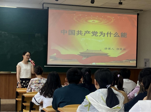 云中讯(通讯员 杨扬)2021年6月17日晚,校党委委员、副校长祁苑红在精专楼6104讲授题为《中国共产党为什么能》的党史学习教育专题党课。本次党课由护理学院党委书记、院长毕怀梅主持,护理学院全体教师、学生党员共同聆听党课。