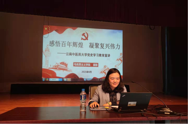 宣讲会上,苗丽从“资政育人学党史”“回首百年辉煌路”和“起航复兴新征程”三个方面进行讲解,并结合详实的史料、生动的例证、独到的解析,为学生们梳理了百年党史的基本脉络,回顾了党在不同历史时期和发展阶段取得的辉煌成绩,同时用一个个生动、形象的党史故事,让参会学生感受中国共产党建党、建国的艰难,从中感悟中国共产党的百年辉煌。最后,她鼓励同学们从百年党史中汲取积极向上的前进目标,并凝聚成实现中华民族伟大复兴的强大动力。