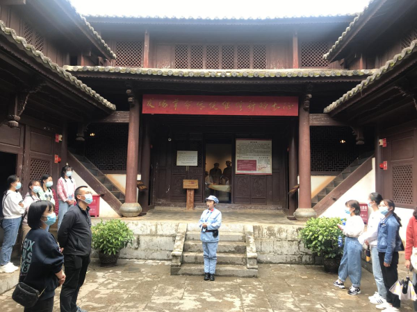 全体师生党员瞻仰了红军雕塑,参观了中央红军总部长征驻地旧址、总参谋部作战室、毛泽东、周恩来、刘伯承、朱德等同志长征时在丹桂村的居所、珍贵历史文物和烈士遗物,聆听了讲解员讲述的红军长征历史。