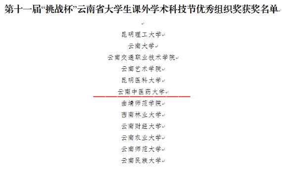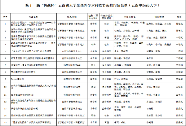 第十一届“挑战杯”云南省大学生课外学术科技节我校获奖项目如下: