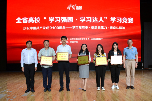 云中讯(通讯员 邢雨阳)5月28日,由中共云南省委教育工委、云南省教育厅主办的全省高校“学习强国·学习达人”学习竞赛在昆明学院举行,我校选派三位师生代表组队参加此次竞赛。最终,基础医学院田园老师,审计处孙亚娟老师在入围赛环节总成绩进入全省前50名。我校第一临床医学院麻醉科主任邓新波年度学习积分排位全省教育系统第二名,荣获年度积分达人奖,学校荣获优秀组织奖。