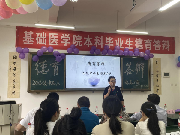 德育答辩过程中,毕业生们回顾了大学的成长过程,展示了自己取得的成绩,分享了一路走来的深刻感悟,感谢了老师及同学们的指导和帮助,表达了自己对未来的期许。个人答辩结束后,评委老师对毕业生进行了提问,并对毕业生寄语,希望大家在今后不忘学医初心,积极发展中医药事业,为人类健康事业做出贡献。