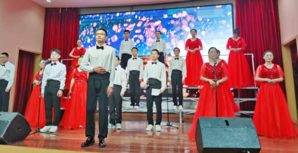 赵荣回顾建党百年雄伟壮丽的历程,用激情澎湃的致辞拉开了整场比赛的序幕。比赛现场,充满青春气息,参赛者热情洋溢,《我和我的祖国》《不忘初心》《歌唱祖国》《在灿烂的阳光下》《唱支山歌给党听》《党的光辉照耀我》《黄河大合唱》等歌曲旋律动人、节奏明快、催人奋进,每一首歌曲都流露出选手对党、对祖国的真诚祝福,每一名选手在台上都拼尽全力,激情昂扬,深情演绎爱党、爱国的美好乐章。比赛过程中还穿插了党史知识问答互动环节,同学们踊跃抢答互动。