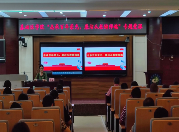 本次专题党课内容丰富、感染力强,从历史和现实的角度,正面引导和反面警示相结合,增强了党风廉政教育效果,让全体党员进一步提升了理论素养,强化了廉洁自律意识。此外,根据《基础医学院2021年党风廉政建设宣传教育活动方案》安排,接下来,各党支部书记将在支部范围内讲授“志承百年荣光,争做廉洁先锋”廉政党课,各班级团支部持续开展“廉洁教育进课堂”主题教育活动,学院党委将以钉钉子精神打好党的政治建设攻坚战,为“十四五”开好局、起好步提供坚强政治保障。