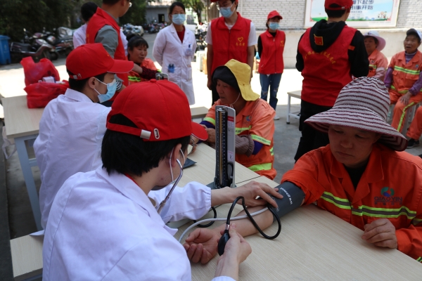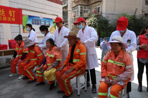 活动中,志愿者们协助环卫工人一起打扫街道卫生,清理街道垃圾,感受到了环卫工人这份职业背后的责任。随后志愿者们为环卫工人们测量血压了解他们的身体情况,为肩颈不适的环卫工人推拿按摩。活动中志愿者们还不时为环卫工人宣讲健康知识、赠送环卫工人缓解胃肠不适、腰腿疼痛的常用药品。