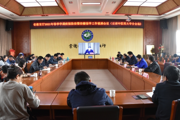 云中讯(记者 陈楠)2021年2月24日下午,我校在呈贡校区崇德楼5楼会议室设分会场参加云南省教育厅2021年春季学期疫情防控暨控辍保学工作视频会。全体校领导、各部门(单位)主要负责人参加会议。