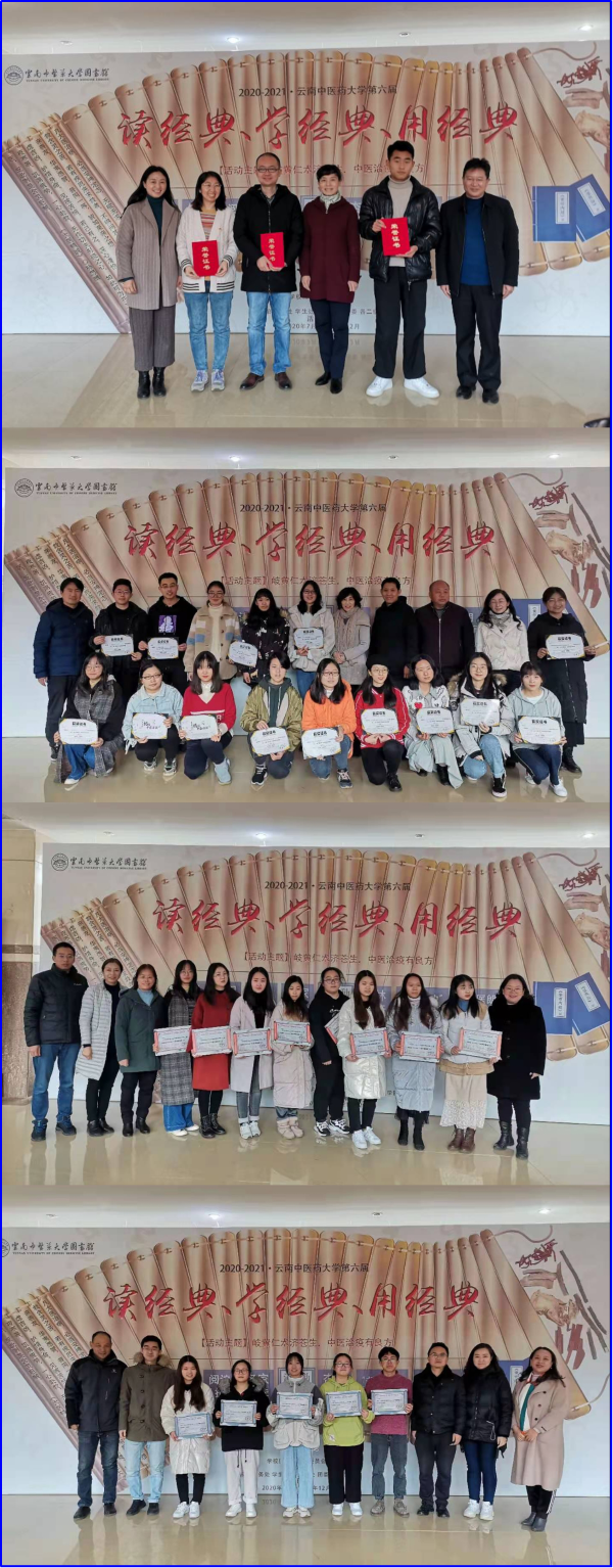 仪式在对第六届全国悦读中医活动、云南省第二届“云岭杯”中华经典诵写讲大赛、云南中医药大学第一、二届“书香云中”悦读中医活动、第二届“十佳书香宿舍”活动、2019年度“阅读之星”的获奖代表颁发荣誉证书中圆满落下了帷幕。
