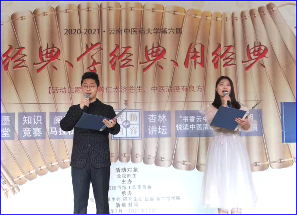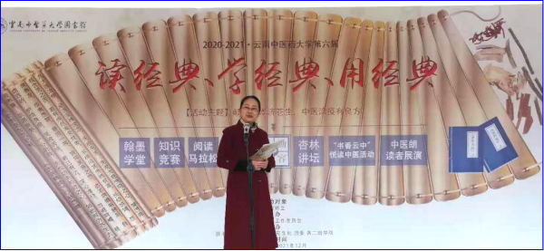 我校“读经典、学经典、用经典”主题系列活动自2013年开始至今已连续举办了五届,已成为学校乃至全省高校中具有影响力的品牌阅读活动。本届活动在2020年7月至2021年12月期间持续举办,内容由翰墨学堂、知识竞赛、阅读马拉松、名家领读、杏林讲坛、中医朗读者展演组成。