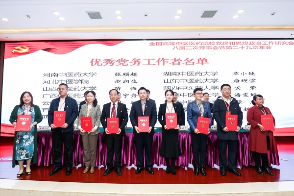 大会表彰了优秀党务工作者和年会优秀论文作者,我校基础医学院党委书记卞瑶同志被表彰为优秀党务工作者,胡冬雄、王维、陈晓凤、卞瑶所撰写的论文《为党育人 为国育才——构建新时代“三全育人”“四维一体”的中医人才培养体系探索》获得论文一等奖,党委组织部姜小琼和第一附属医院党委李亚萍所撰写的论文获优秀奖。
