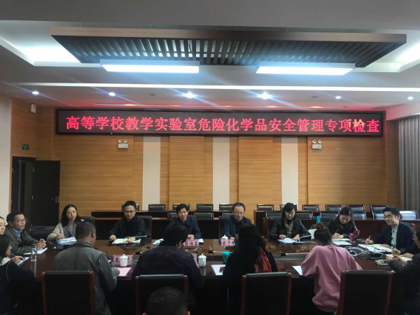 会上专家组在听取副校长钱子刚对我校教学实验室危险化学品安全管理工作汇报后,查阅资料,并进行了实地检查。