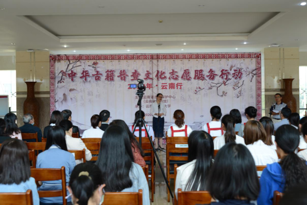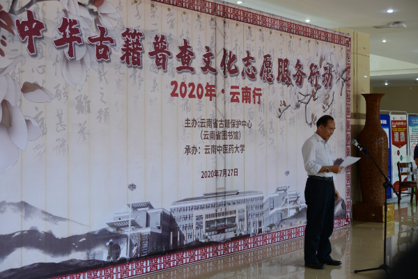 云中讯(通讯员 吴婧)2020年7月27日上午,夏日的阳光和煦温暖,微风徐徐扑面,由云南省古籍保护中心(云南省图书馆)主办,我校承办的“2020年中华古籍普查文化志愿服务行动·云南行”启动仪式在我校呈贡校区举行。云南省图书馆馆长、云南省古籍保护中心主任马云川,副校长祁苑红出席启动仪式。校图工委委员,全体志愿者及其所在学院领导,图书馆全体教职工等80余人参加了启动仪式。启动仪式由图书馆馆长吕峰主持。