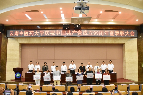 会上,校党委副书记郭平宣读《中共云南中医药大学委员会关于表彰“优秀共产党员”“优秀党务工作者”和“先进基层党组织”的决定》。随后,校领导为受表彰的个人和集体代表颁奖。会上还为省级“规范化建设示范党支部”、校级“规范化建设示范党支部”授牌。
