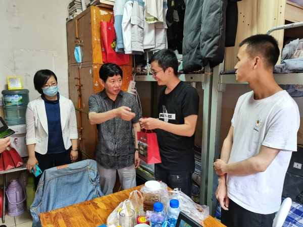 最后,荀传美一行,还慰问了节假日一如既往坚守在岗位上的宿管和值班人员,感谢他们的辛苦付出,并嘱咐对学生多一份耐心,多一份细心,多一份关心……