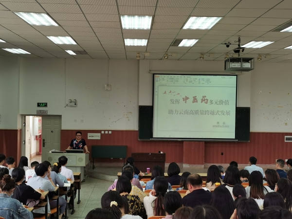 熊磊以“发挥中医药多元价值,助力云南高质量跨越式发展”为主题开讲。围绕习近平总书记视察云南重要讲话、对中医药工作的重要指示精神,党中央治国理政新理念新思想新战略,云南“三个定位”战略目标,结合学校人才培养、科研、管理、社会服务、文化传承工作实际,以身边人身边事的方式,讲清中医药文化的哲学价值、文化价值、健康价值、绿色价值、世界价值。指出作为云中人,要把中医药这一祖先留给我们的宝贵财富继承好、发展好、利用好,要遵循中医药发展规律,做好守正、传承、创新,充分发挥中医药防病治病的独特优势和作用。炼好九字经,从学、抢、想、改、聚、干、讲(奖)、仁、廉等九个方面谋划工作、做实工作,推进学校各项工作,服务云南改革建设发展,为建设中国特色社会主义,实现中华民族伟大复兴的中国梦贡献力量。