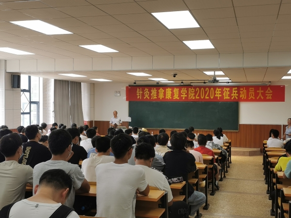 云中讯(通讯员 杨艳芳)携笔从戎,明日英雄。为响应教育部、中央军委国防动员部大学生征兵工作部署,根据学校安排,为部队输送更多高素质兵员,针灸推拿康复学院于6月18日在二期教学楼6307召开了2020年征兵动员大会,会议由学工办主任杨延芳主持。