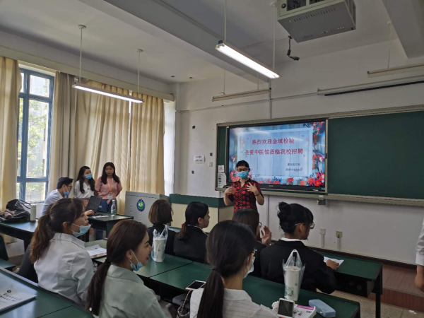 此次招聘会共有金域医学检验中心(云南分公司)、圣爱中医馆两家企业来招聘人才,大约有30余名毕业生参加了招聘。招聘会上,招聘单位通过播放宣传片、PPT展示、现场答疑等方式向同学们介绍公司概况、企业文化、组织构架、人员需求以及职业发展方向等。宣讲结束后,同学们对两家企业的各项信息和文化理念有了一定的了解,会后与招聘人员交流,主动了解用人单位的情况。
