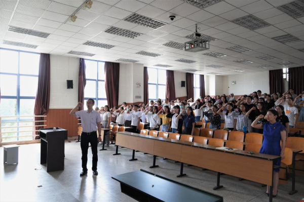 全体党员在党旗下重温入党誓词,让每一位党员谨记无论身在何处、立足何职,都要铭记誓言,不忘初心,牢记使命。