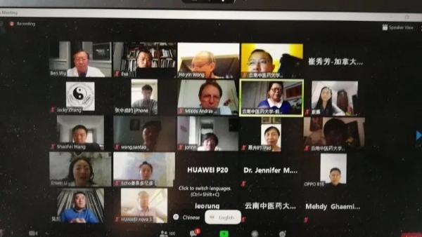 安大略中医学院院长吴滨江教授与我校中医西学研究所吴凯副教授共同主持在线视频会议。