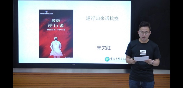 宋欠红老师分享了自己在湖北通城57天的援鄂经历,结合中医临床经验,以生动的案例,介绍了中医药在本次疫情防控和临床治疗中发挥的重要作用,并鼓励团员青年们要坚定文化自信、专业自信,刻苦锤炼本领,以实干和奋斗向祖国致敬。