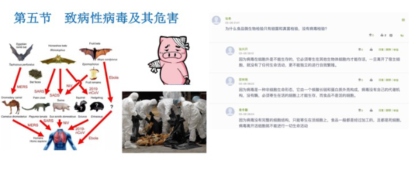 在此次新冠肺炎疫情中,中医药发挥了重要作用,如方舱医院累计服用中药人数超过90%,有成建制队伍和定点医院,使病患得到了系统规范的中医治疗,取得了很好的效果,这具有标志性的意义。在教学中,中药教研室积极介绍中医药在疫情防控中的优势和治疗方法,着重介绍了中医药治疗已经纳入国家《新型冠状病毒感染的肺炎诊疗方案》的相关案例以及在新型冠状病毒肺炎恢复期中医康复指导建议。食品专业的老师,结合新冠疫情和国家卫生健康委员会发布的《新型冠状病毒感染的肺炎诊疗方案(试行第四版)》进行授课,激发学生对专业的认同感,表示食品专业同样也可以站在“战疫”一线为人民的健康保驾护航。