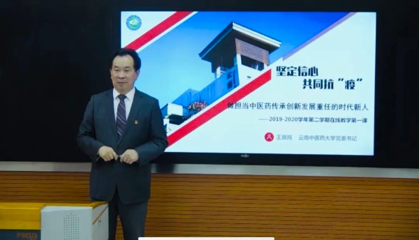 云中讯(新闻中心)3月2日上午8:30,我校“坚定信心,共同抗‘疫’——做担当传承创新发展中医药重任的时代新人”2020年春季学期“在线教学”第一课如期开讲,校党委书记王翠岗准时亮相网络,一网“屏对屏”传递中国心,为抗击疫情鼓劲加油。