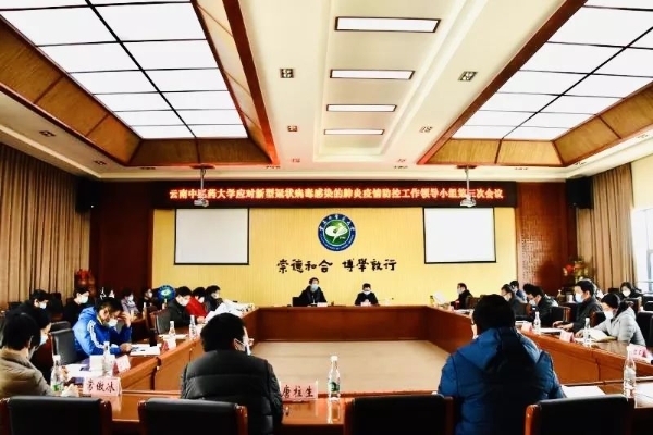云中讯(新闻中心)2月13日上午,校党委书记、应对新冠肺炎疫情防控工作领导小组组长王翠岗在呈贡校区主持召开疫情防控工作领导小组第三次会议。会议传达学习习近平总书记在京调研指导新冠肺炎疫情防控工作时的重要讲话、2月12日中央政治局常委会精神,以及近期中央、教育部、省委省政府疫情防控重要会议文件精神,通报1月24日以来全校疫情防控工作情况,统筹安排部署下步疫情防控和开学准备工作。校领导熊磊、荀传美、郭平、孟庆红、祁苑红、李媛芬、钱子刚出席会议。
