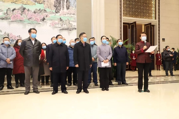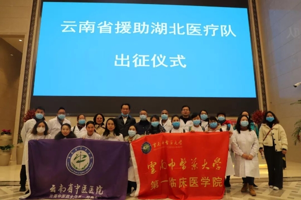 当日上午9:00,我校第一附属医院19名队员到达长水机场公务候机楼,与来自5所省级医院共计138名医护人员组成的第一批援助湖北医疗队集结完毕,准备奔赴湖北疫情防控一线。受省委书记陈豪、省长阮成发委托,省委常委、常务副省长宗国英、副省长李玛琳专程到机场为医疗队出征送行。在简短的出征仪式上,宗国英同志为医疗队授旗,李玛琳在讲话中对全体医疗队员提出了殷切希望和明确要求。省卫健委党组书记王灿平、省卫健委主任杨洋等,省卫健委副主任、中医药管理局局长许勇刚、我校第一附属医院党政主要领导及出征医院负责同志、部分队员家属也前来送行。