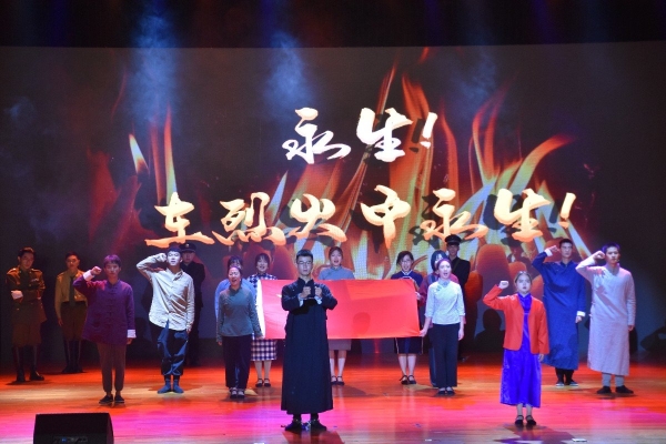 此次主题团课以朗诵、舞台剧及舞蹈的形式,展演了《烈火中永生》《共产主义》《赵一曼书》《陈毅安致志强书》《等待》《庄严的宣誓》《祖国不可替代》七个由学校广播台、舞蹈队创作的爱国主义作品。展演结束后,马克思主义学院张根生老师还为在场师生讲述了精彩的团课。