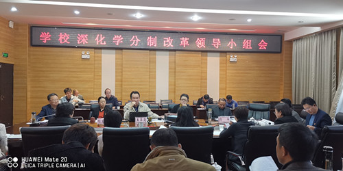 云中讯(教务处)2019年11月22日上午,校党委书记王翠岗主持召开深化学分制改革领导小组第6次会议,审议深化学分制改革总体方案。校党委副书记、校长熊磊,党委副书记郭平,校党委委员、副校长祁苑红、钱子刚,领导小组成员单位(党校办、团委、人事、教务、高教研究评估、学生、计财、资产、后勤服务,各教学单位)负责人出席会议。
