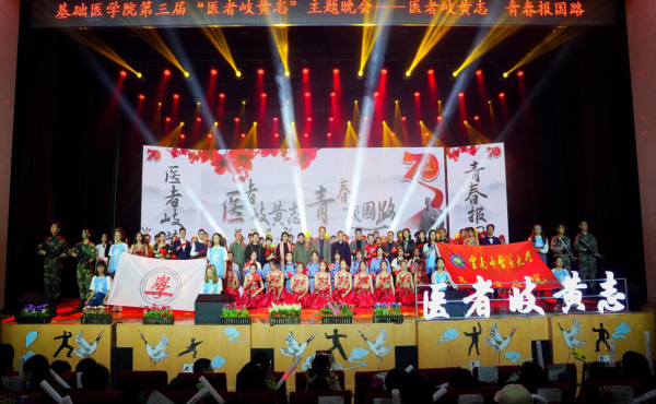 云中讯(通讯员 陈晓凤)2019年11月19日晚,基础医学院“医者岐黄志 青春报国路”主题晚会在呈贡校区兰茂堂隆重举行。校党委书记王翠岗、党委副书记荀传美、云端制药有限公司执行董事李霞出席晚会。学校各职能部门、二级学院领导、老师及全体新生近1400余人现场观看演出。