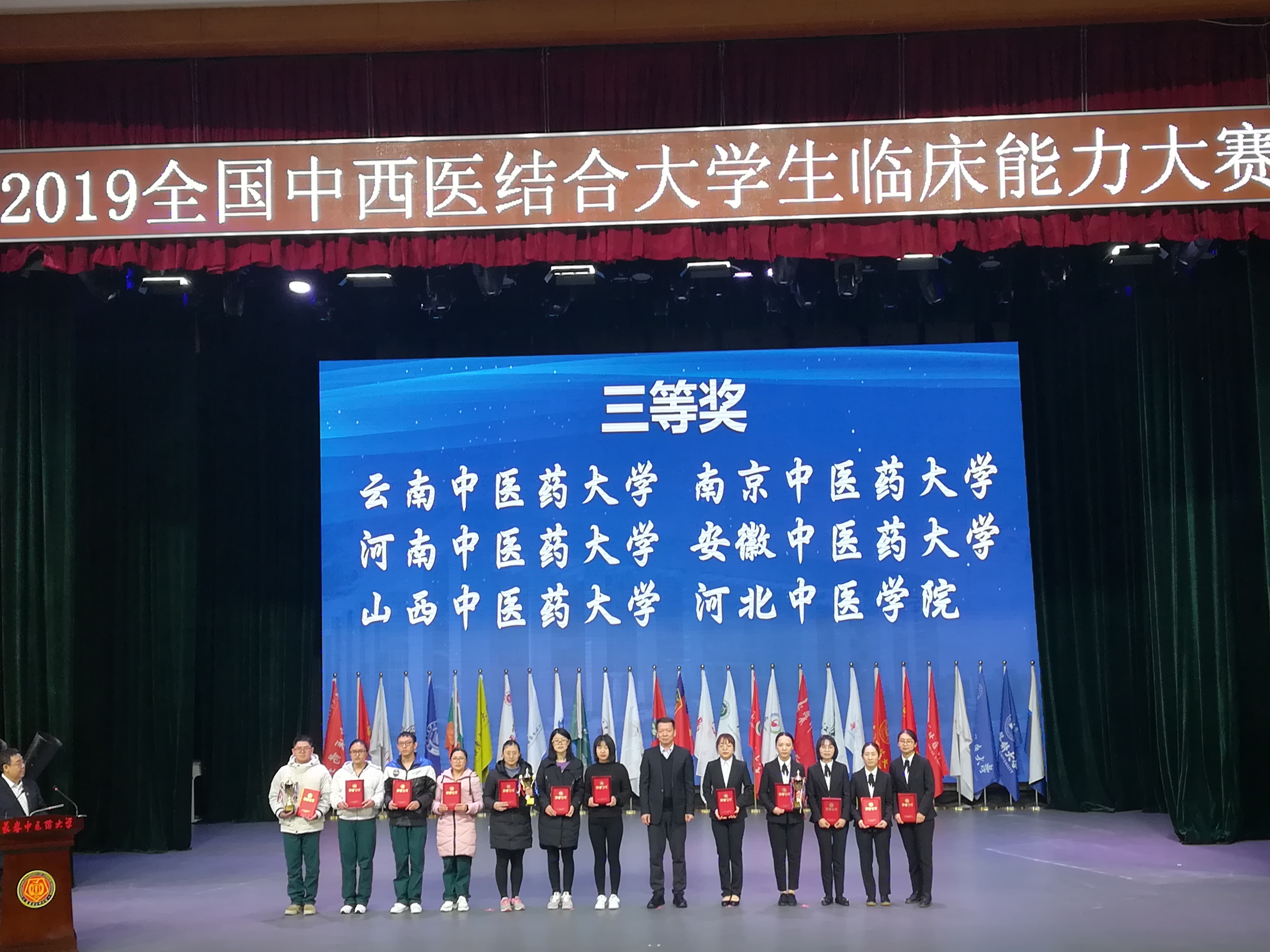 云中讯(通讯员 赵娅玲)2019年11月14日—17日,2019年全国中西医结合大学生临床能力大赛在长春中医药大学净月校区举行,来自全国各地的29所中医药院校和医科院校参加本次大赛。大赛初赛设中医基础理论知识、中医诊断技能、西医诊断技能、中药知识与技能、针灸推拿技能、方剂知识与运用、急救技能共七个单项,复赛设内科、外科、针灸共三个单项。